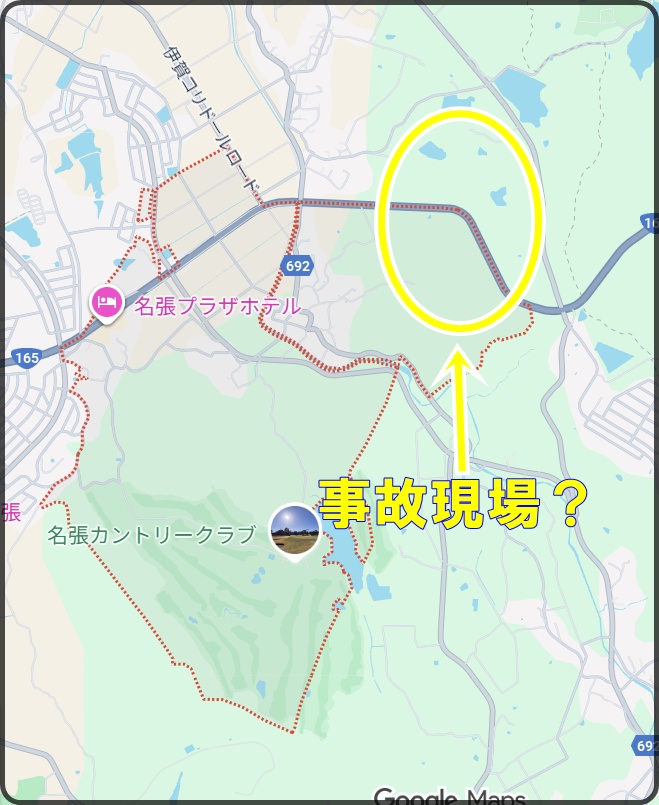 事故現場:名張市上小波田(なばりしかみおばた)の国道165号