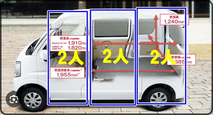 後部座席に3人座れたとしても、少なくとも1人は荷台に乗ることになりそうです。