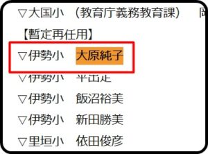 大原さんの両親の赴任先は、2023年3月24日に公布された教職員人事異動に記載されています。