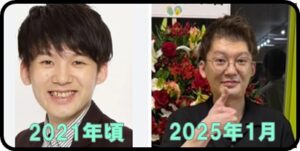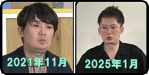 海野さんが2025年現在と4年前ではずいぶん痩せたことが分かります。
