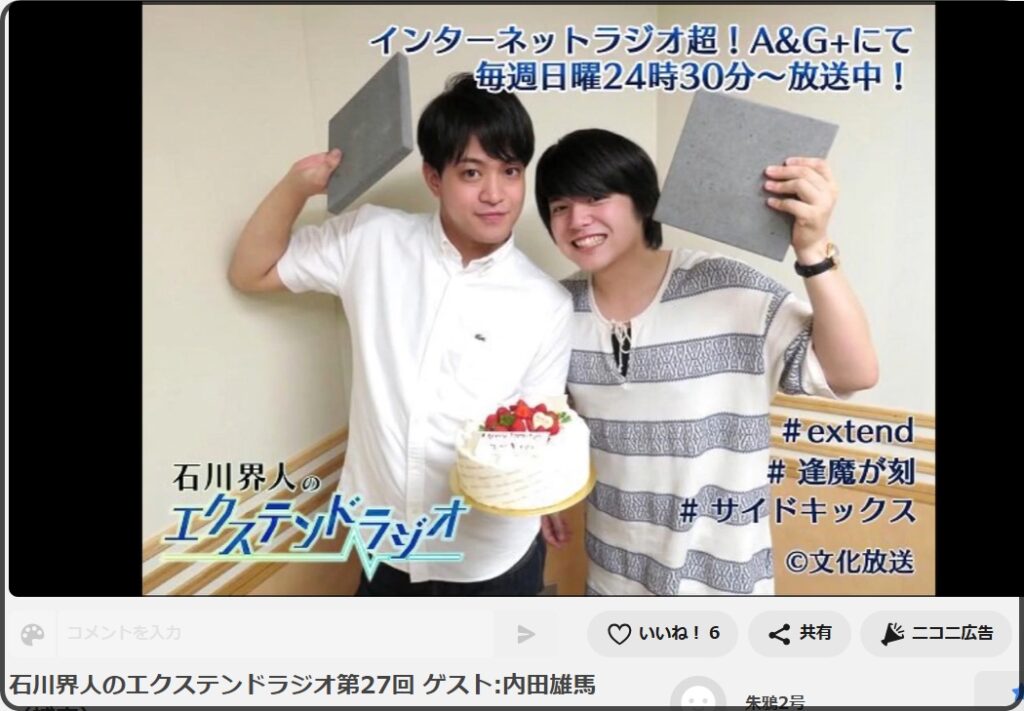 10年ほど前のニコニコで配信された番組に内田・石川の2人も出演していたそう。