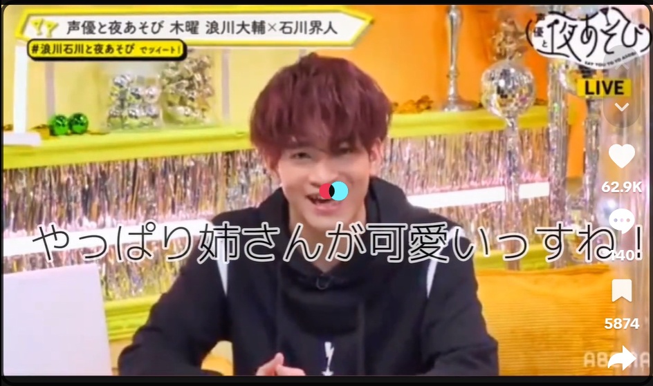 石川さんは、「声優と夜あそび」という配信番組で度々姉の内田さんが可愛いと発言していました。